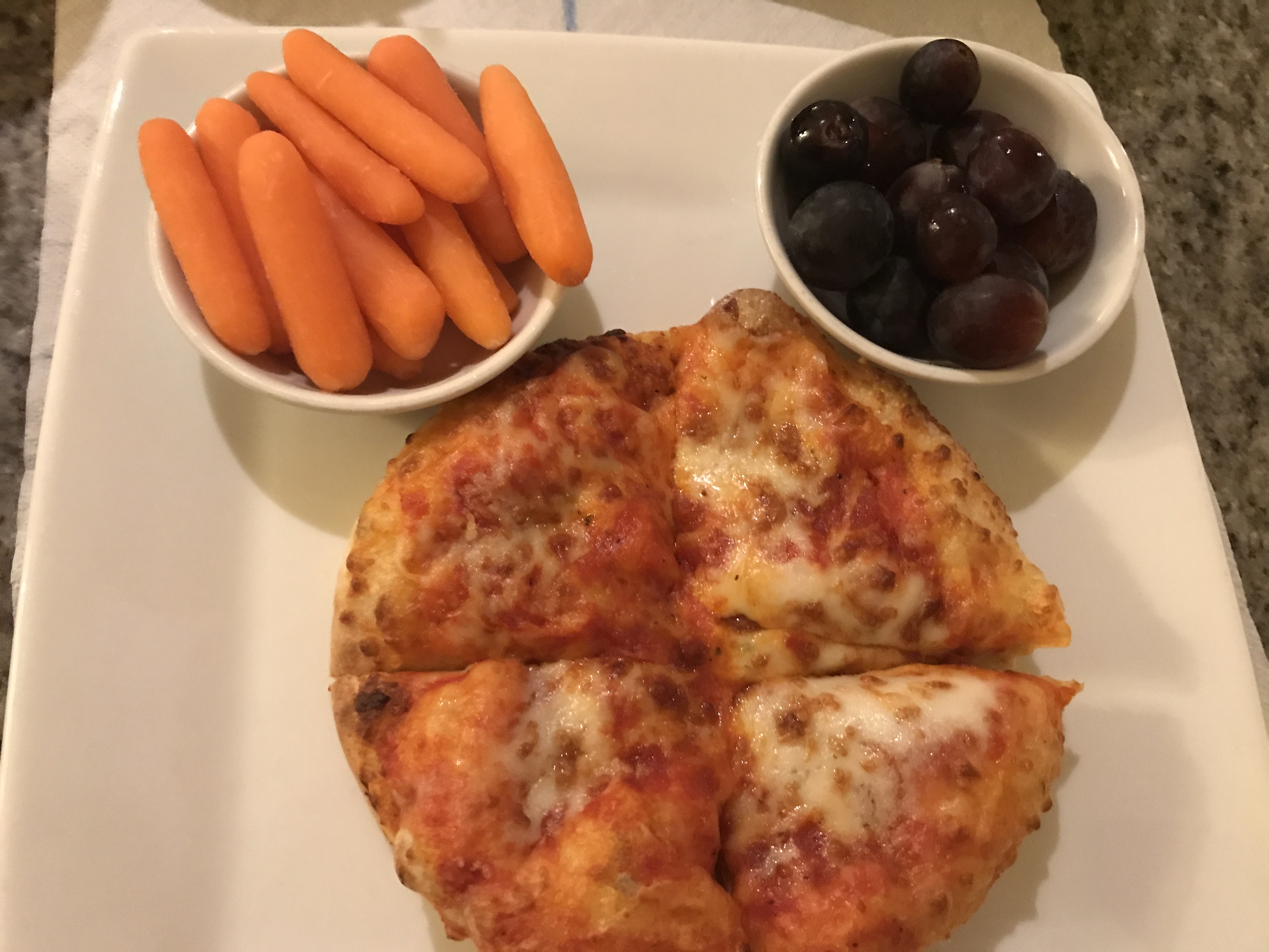 - Kids can enjoy a personal pizza with carrots and grapes