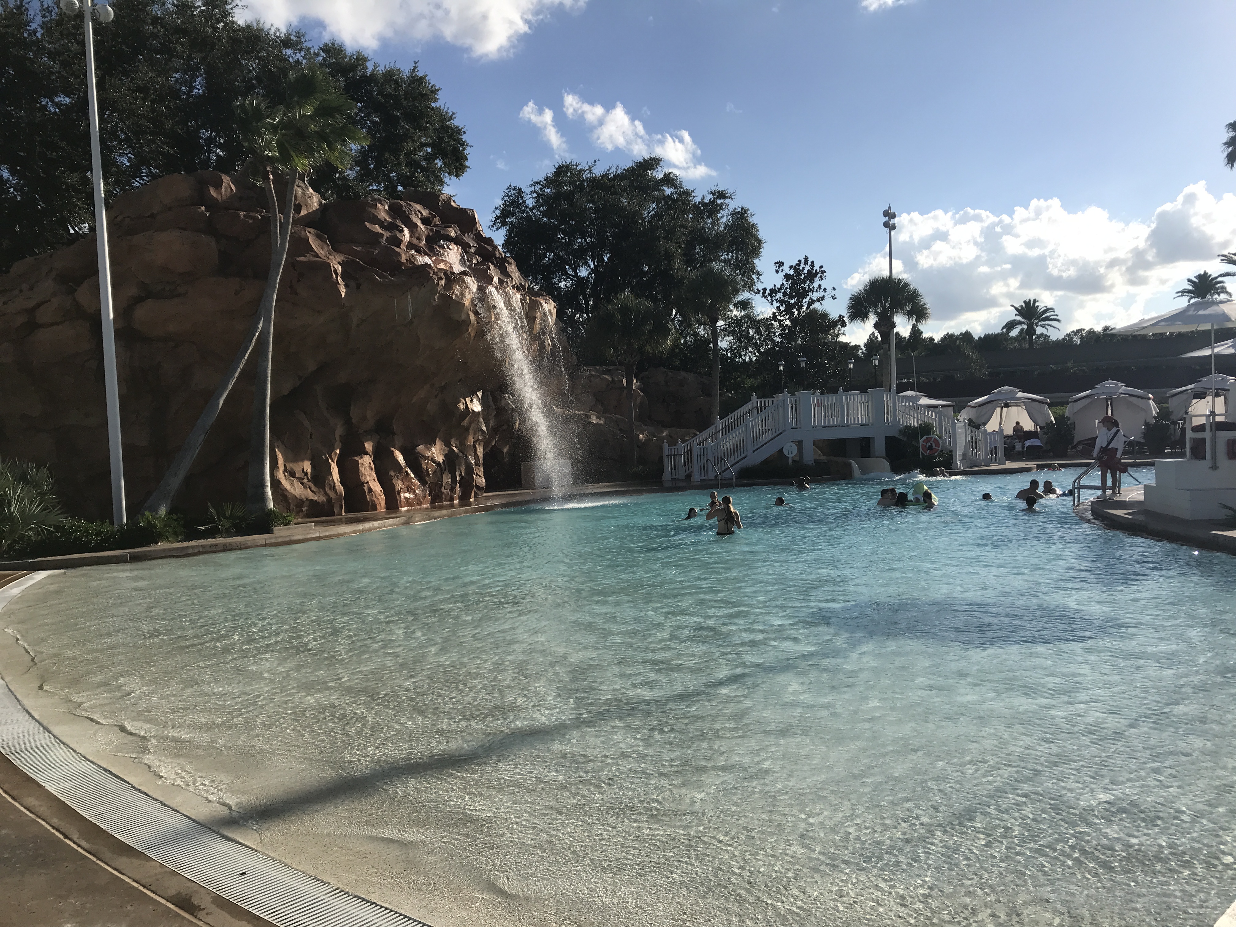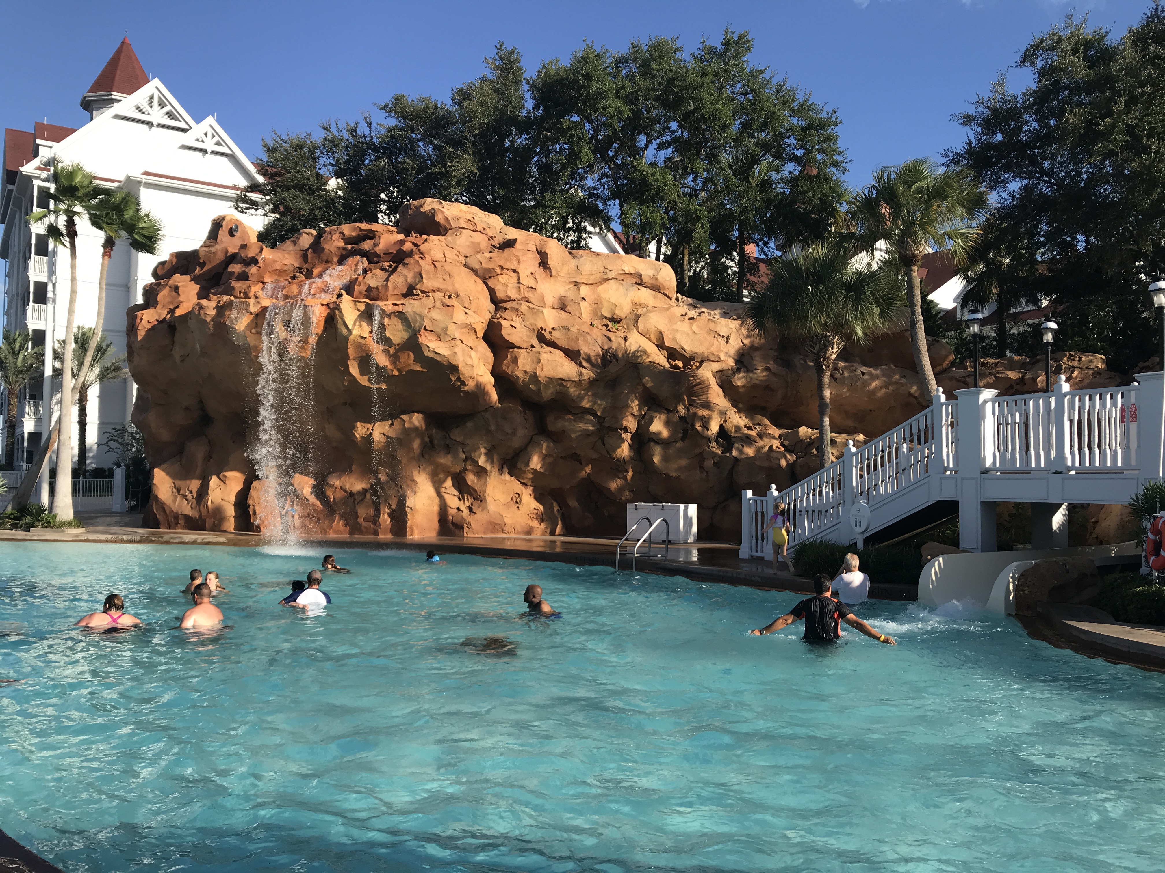 - The Grand Floridian Resort pool showcases a waterfall and waterslide.