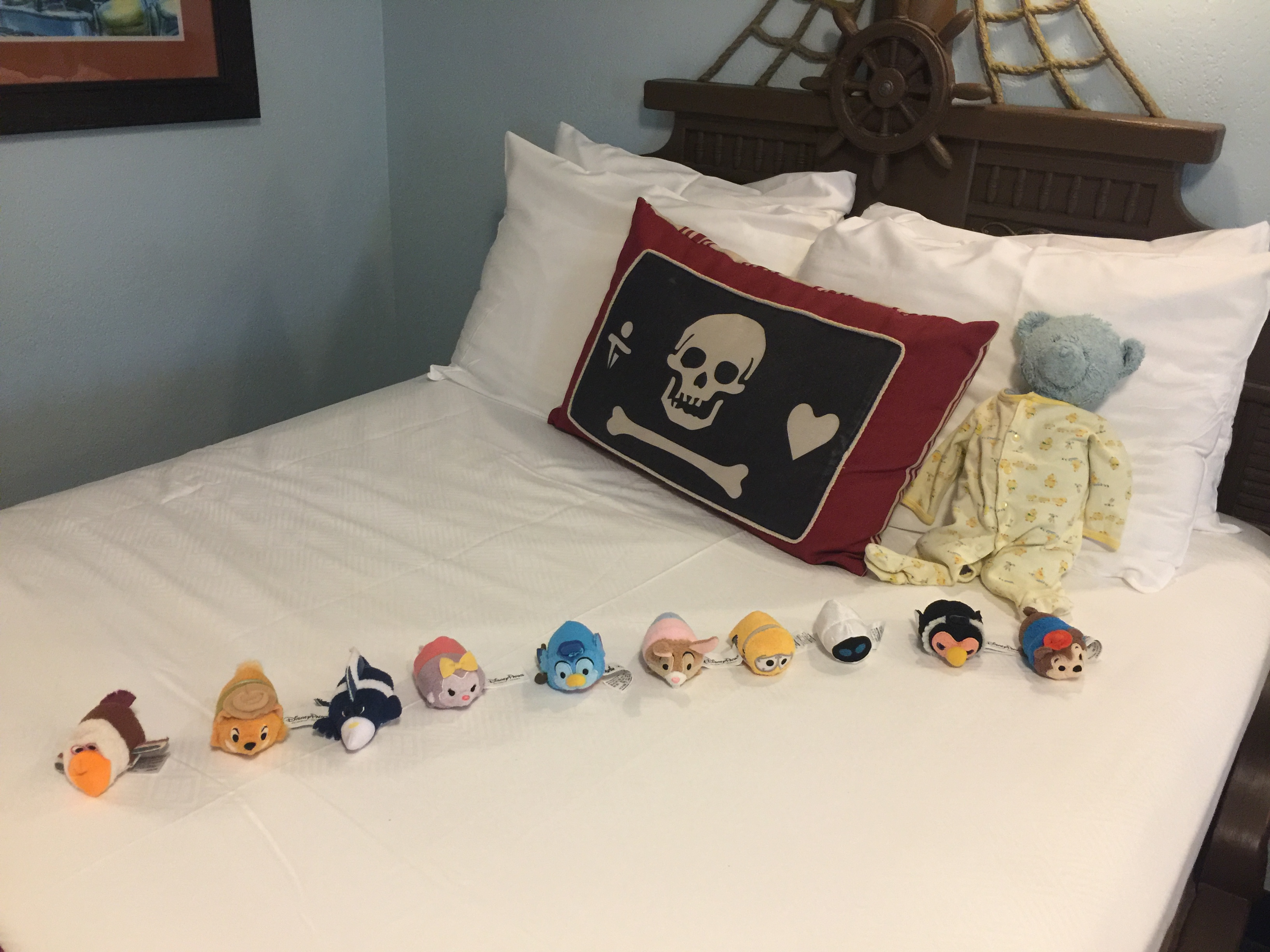 As with all Disney resorts, the Mousekeeping team does an amazing job. A fun tip is to leave your kids’ stuffed animals out on the bed to see all of the special ways the Mousekeepers will find to use them. During our trip to the Pirate Rooms, we had a serious tsum tsum obsessions and we loved finding them pirating the ship when we got back!