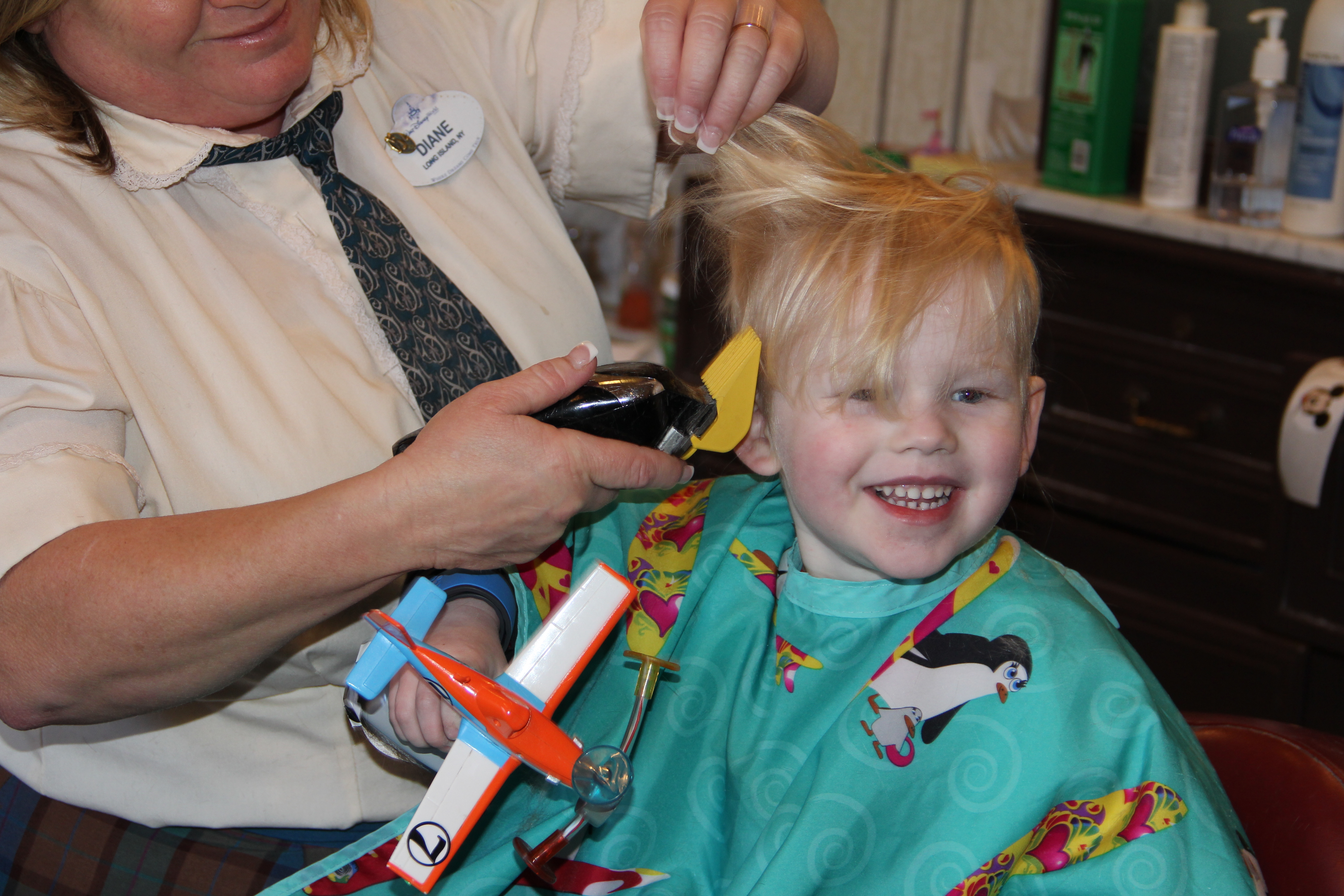 - They cut little kids’ hair all day and with magical Disney service. They know what they are doing and every trip here has been 100x better than a trip to get our hair cut back home. Who ever thought to cover a kid with stickers for the whole hair cut?