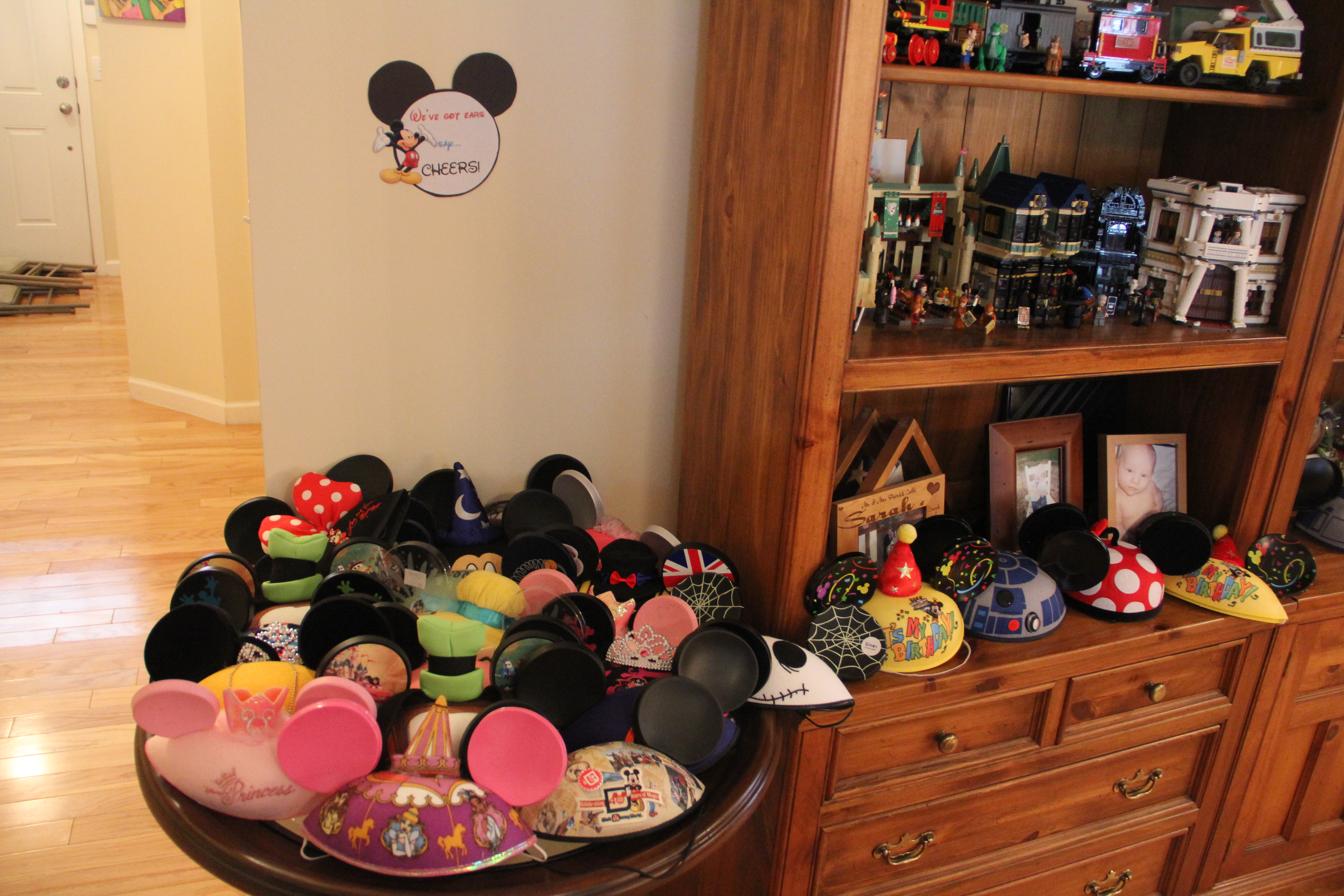 By far, my favorite find from my searches was from eBay. I wanted Mickey Ears for everyone to wear, but didn’t have a budget to spend $19.99 on each pair. My searches on eBay came up with plenty of generic ears for cheap, but I wanted some real characters (R2D2, Toy Story, Goofy, etc). I hit the jackpot when I found groups of “mistake” ears that had been embroidered incorrectly or never paid for. They were sold in big lots and had great things like “Happy 40th Anniversarrry” and random names embroidered on the back. They became the centerpiece of the party, and everyone loved picking out funny, misspelled sayings or random names to take on a persona for the party. The ears were the perfect party-favor as we let everyone take their ears home with them.
