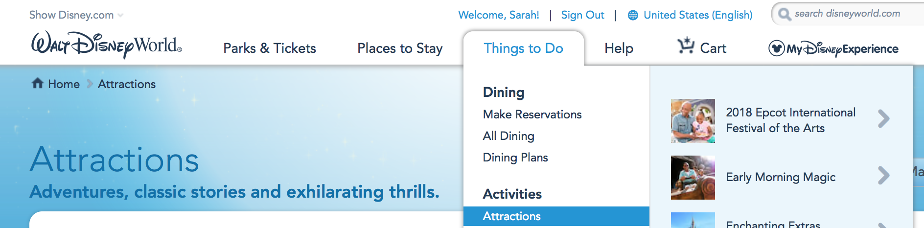 - Select Attractions from the “Things to Do” Menu