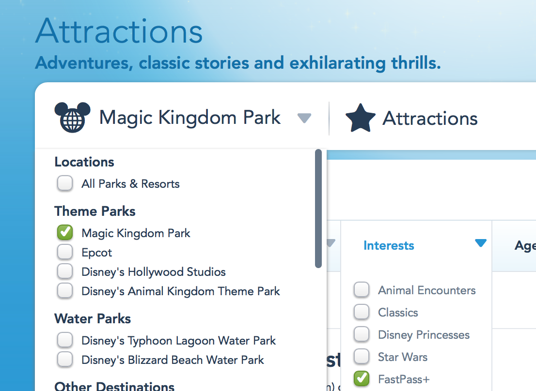 - Filter for Magic Kingdom Park and FastPass+ From the Interest Menu