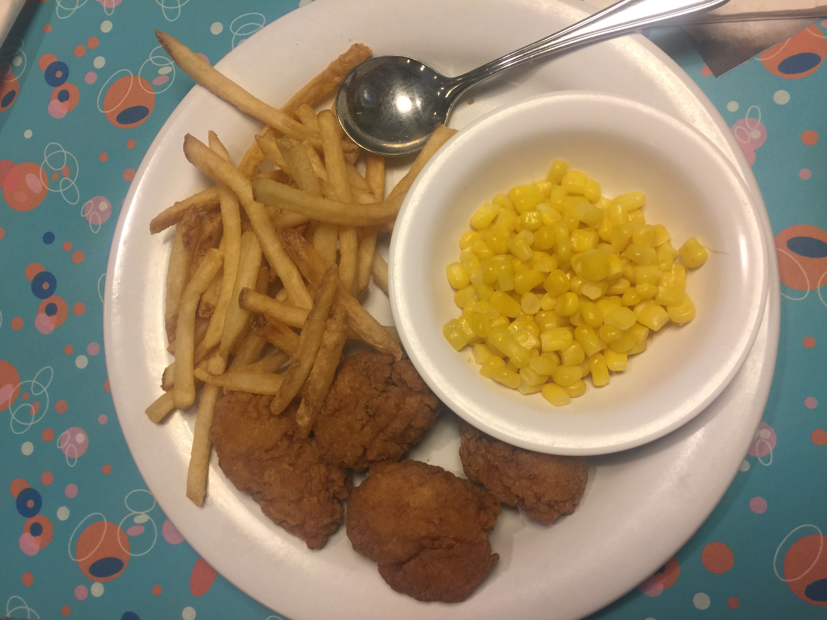 - Kids Entree at 50’s Prime Time Cafe – Chicken Nuggets, Corn, French Fries
