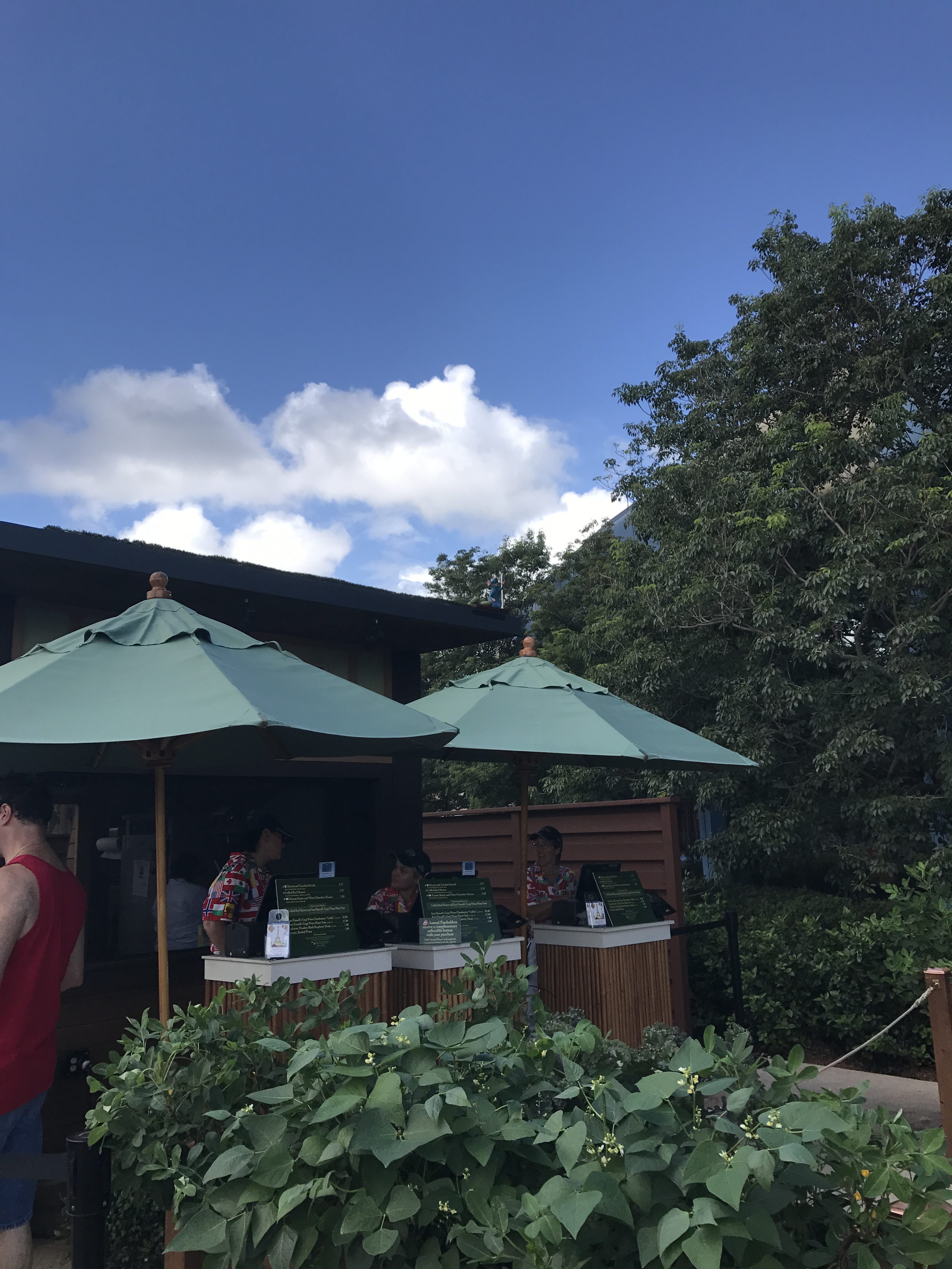 We did have to ask for help a couple of times and Cast Members were more than happy to tell us to keep going or turn back if we had passed it already. Don’t get fooled into thinking you can see them all from one direction. We had to turn around and approach pavilions from the opposite direction to find some of the hiding Remy’s, like this one in the Outpost.