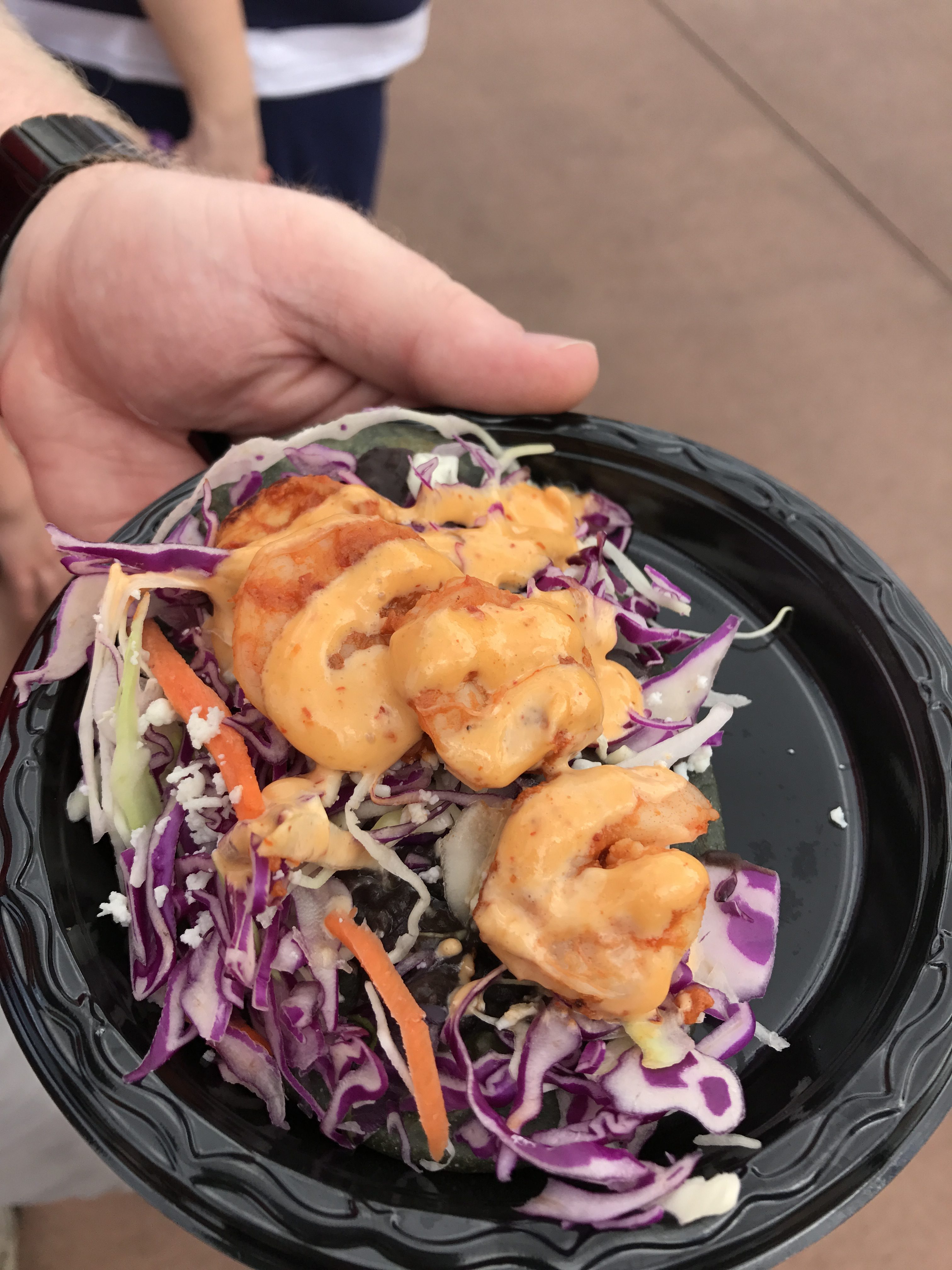 - Tequila Chipotle Shrimp: Served on a Black Bean Huarache garnished with Red and Green Cabbage, Queso Fresco and Crema Mexicana