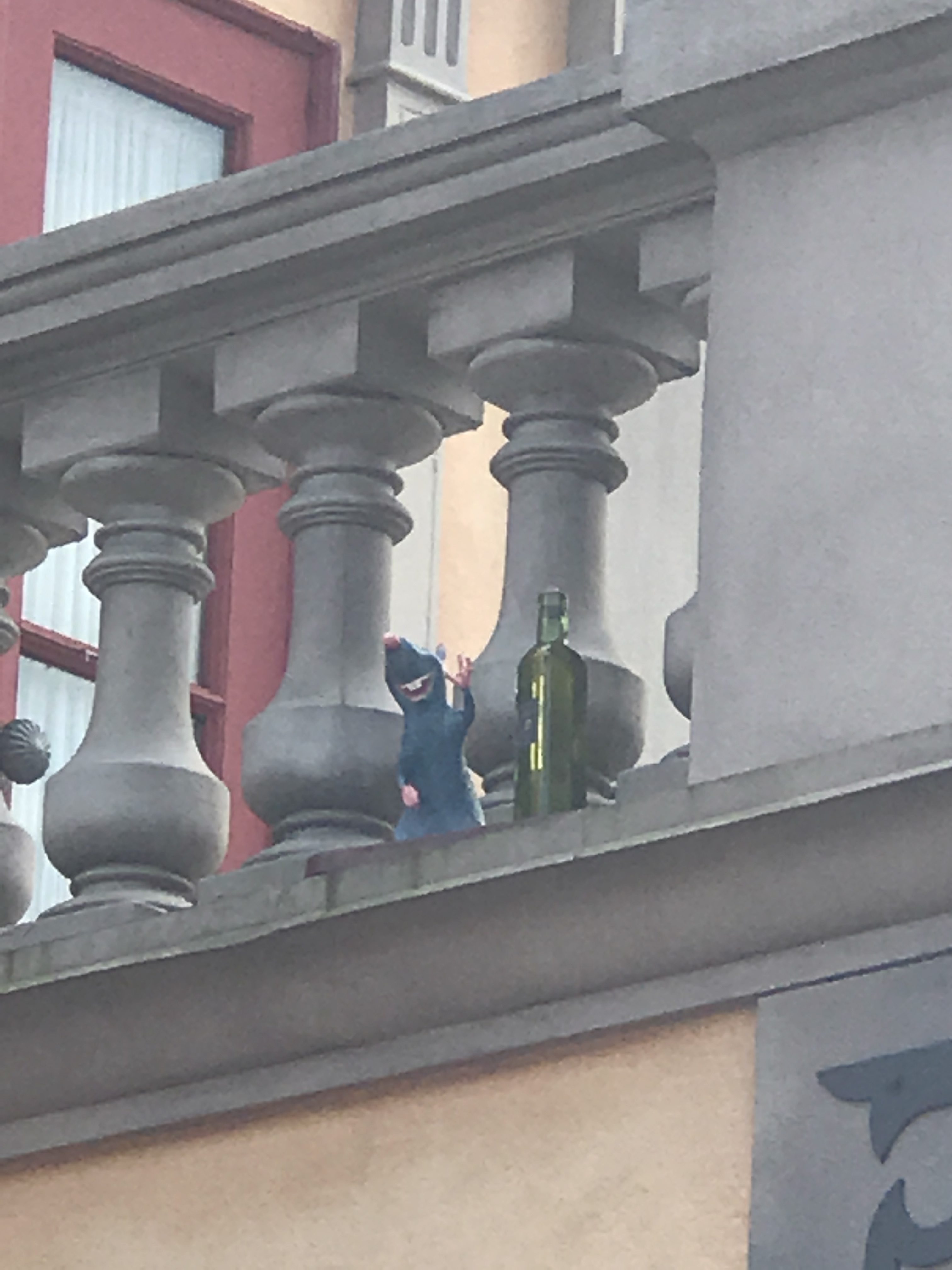 - Hiding on the balcony in Germany.