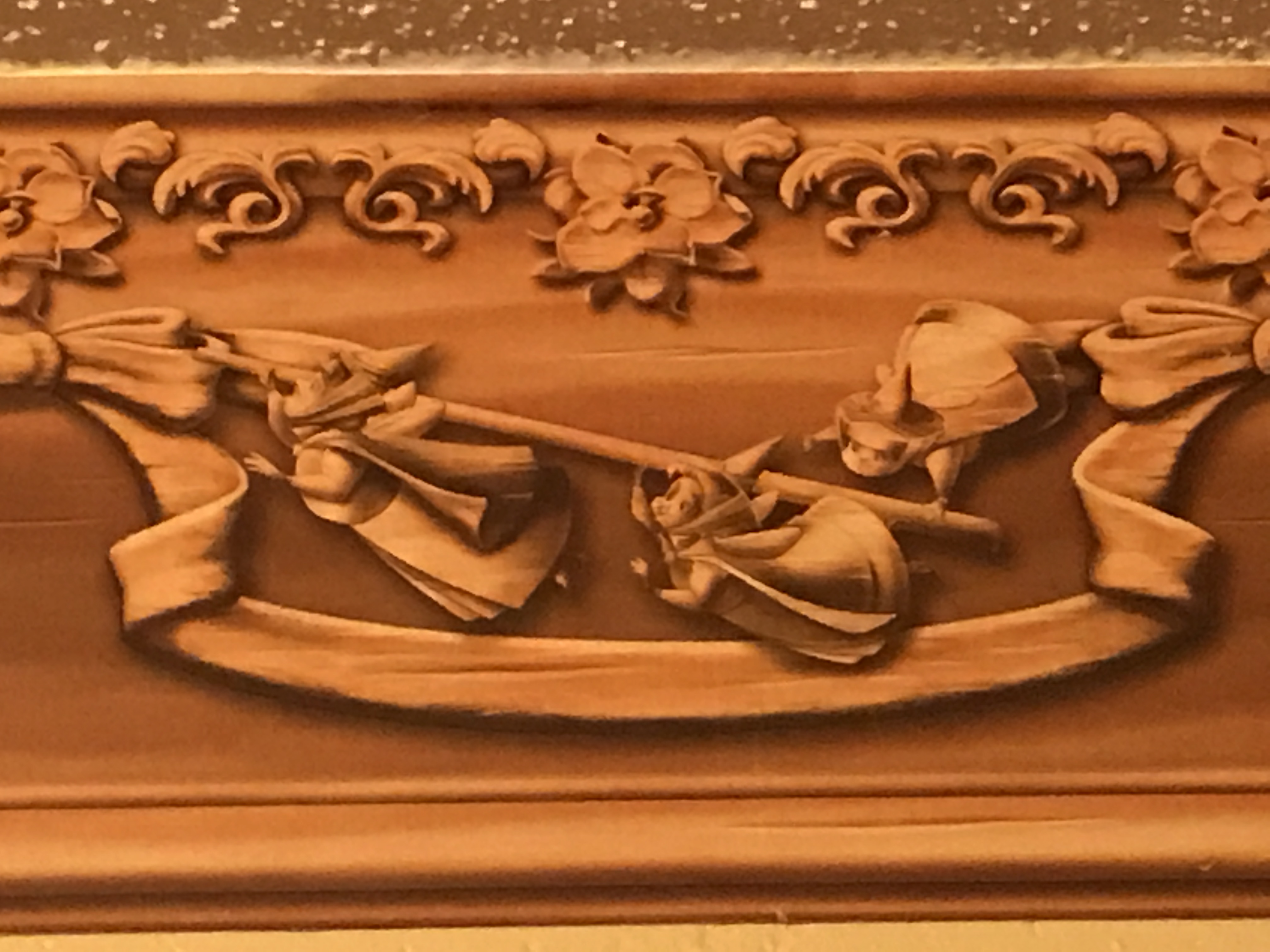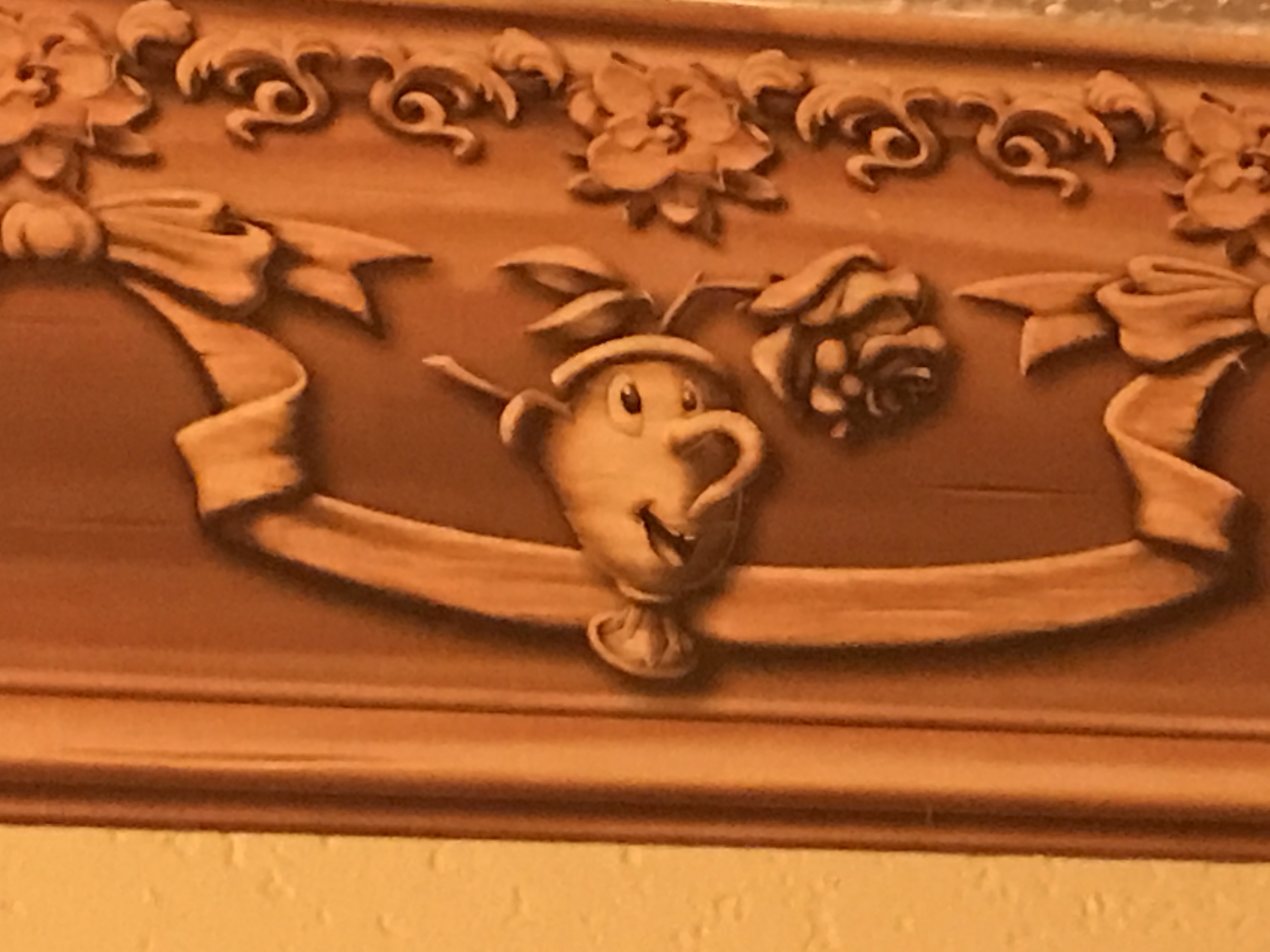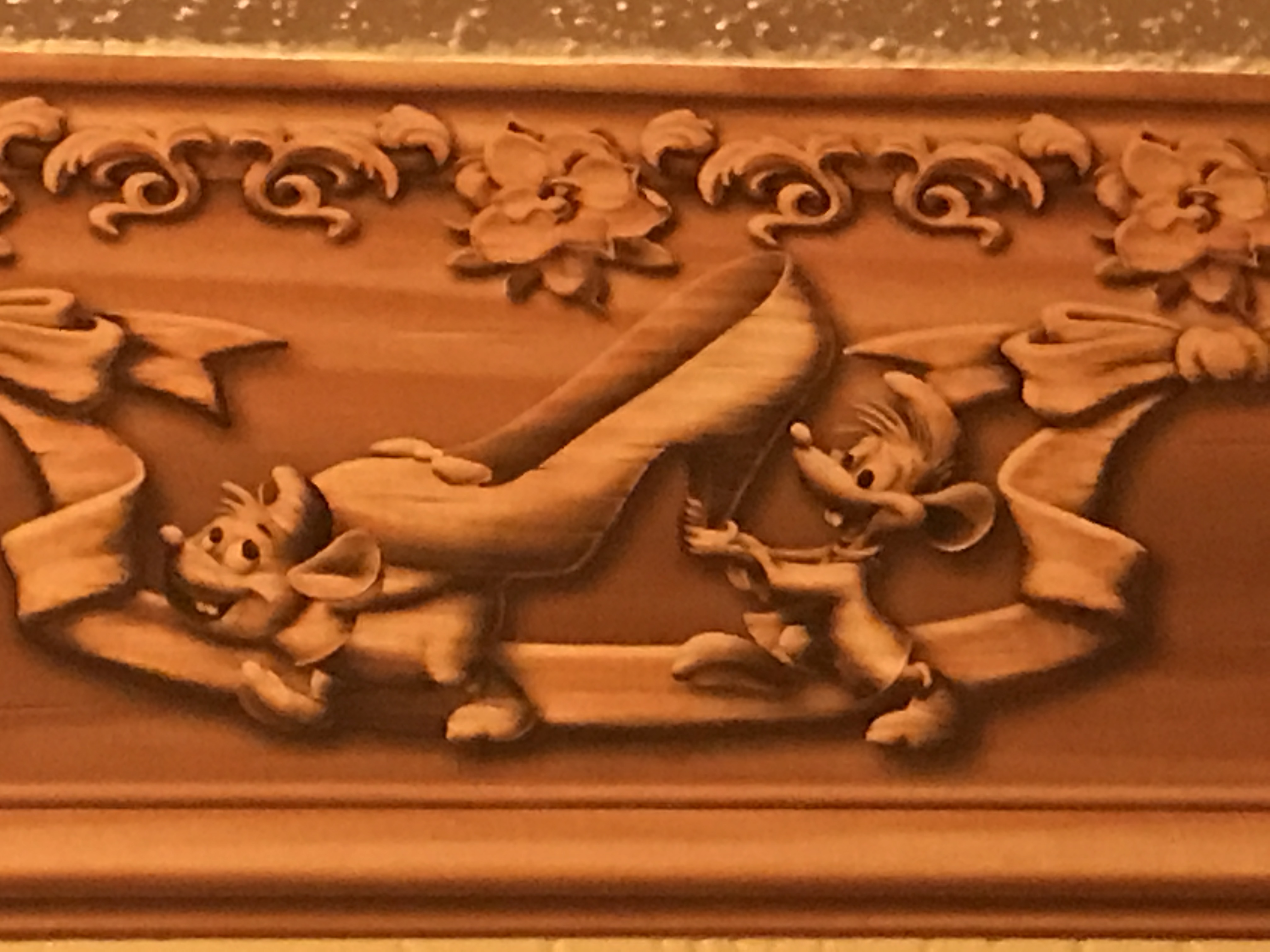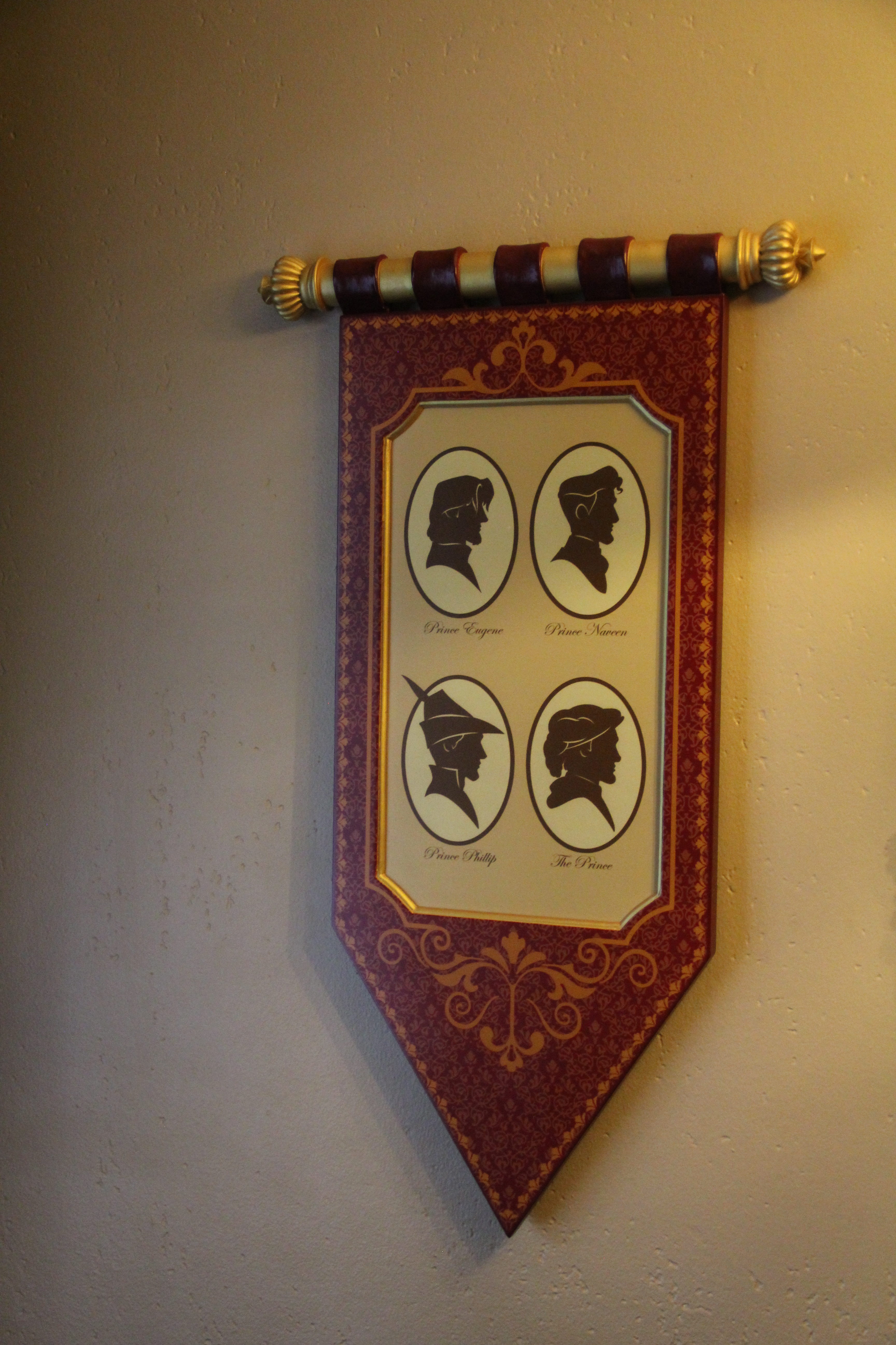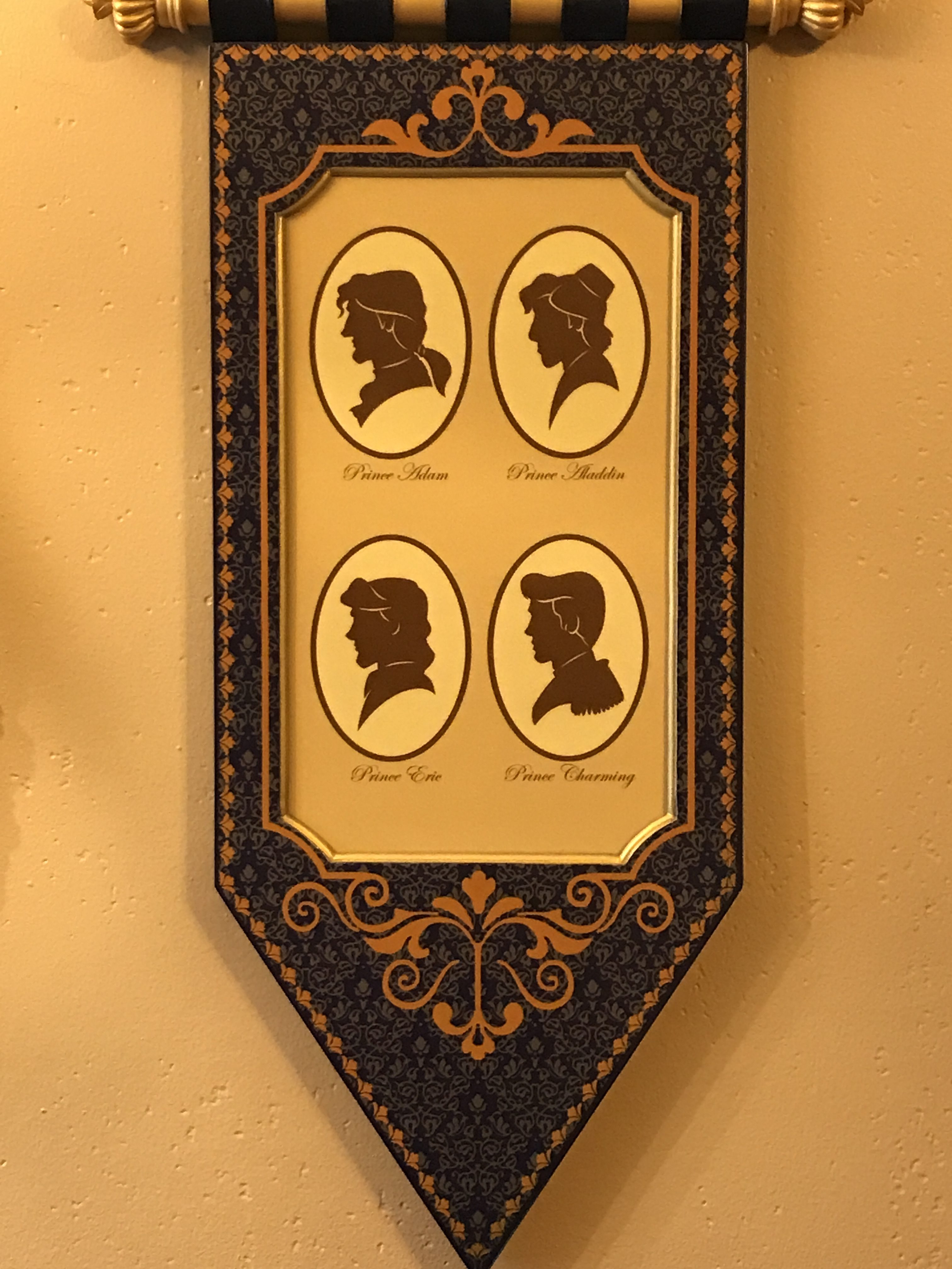 There are portraits of the Princes and Princesses along the walls. I even loved the wallpaper boarder with all of the Princesses loyal friends, including Gus Gus!